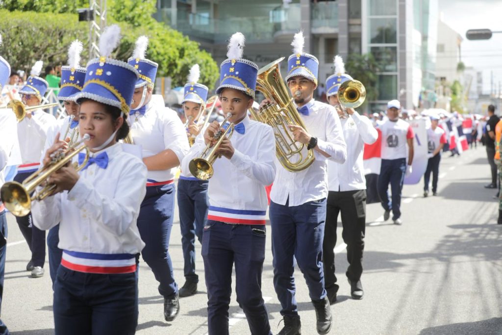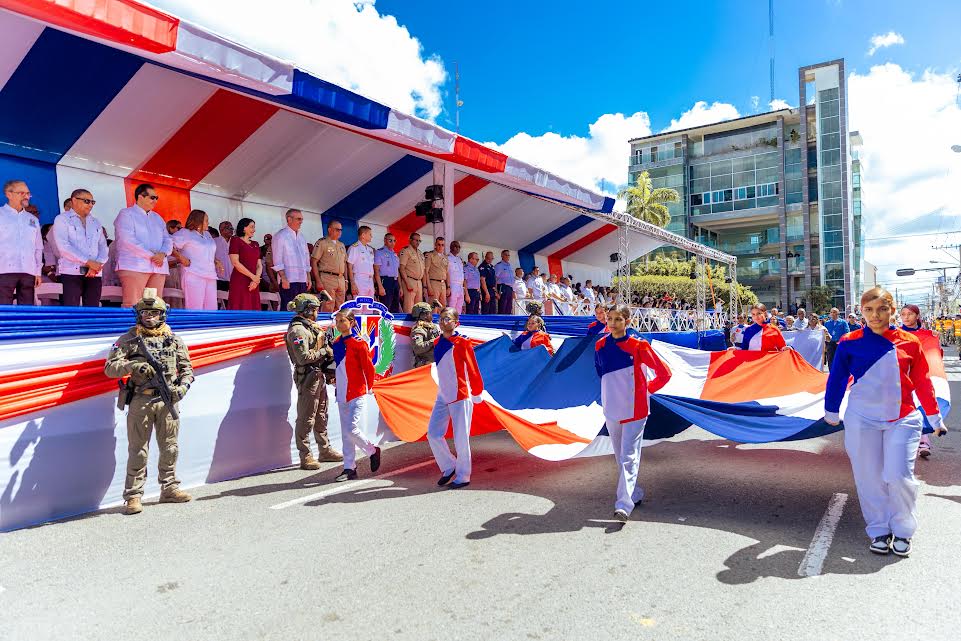 La conmemoración continuó con el desfile cívico, militar y policial caracterizado por el entusiasmo, el colorido y la integración de los munícipes de la provincia Duarte y su municipio cabecera, San Francisco de Macorís, donde los estudiantes mostraron con orgullo los símbolos y el colorido de la dominicanidad.
