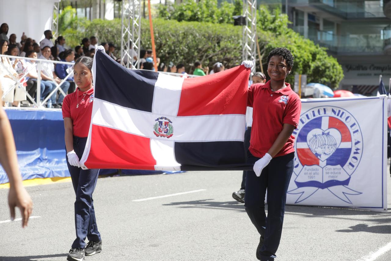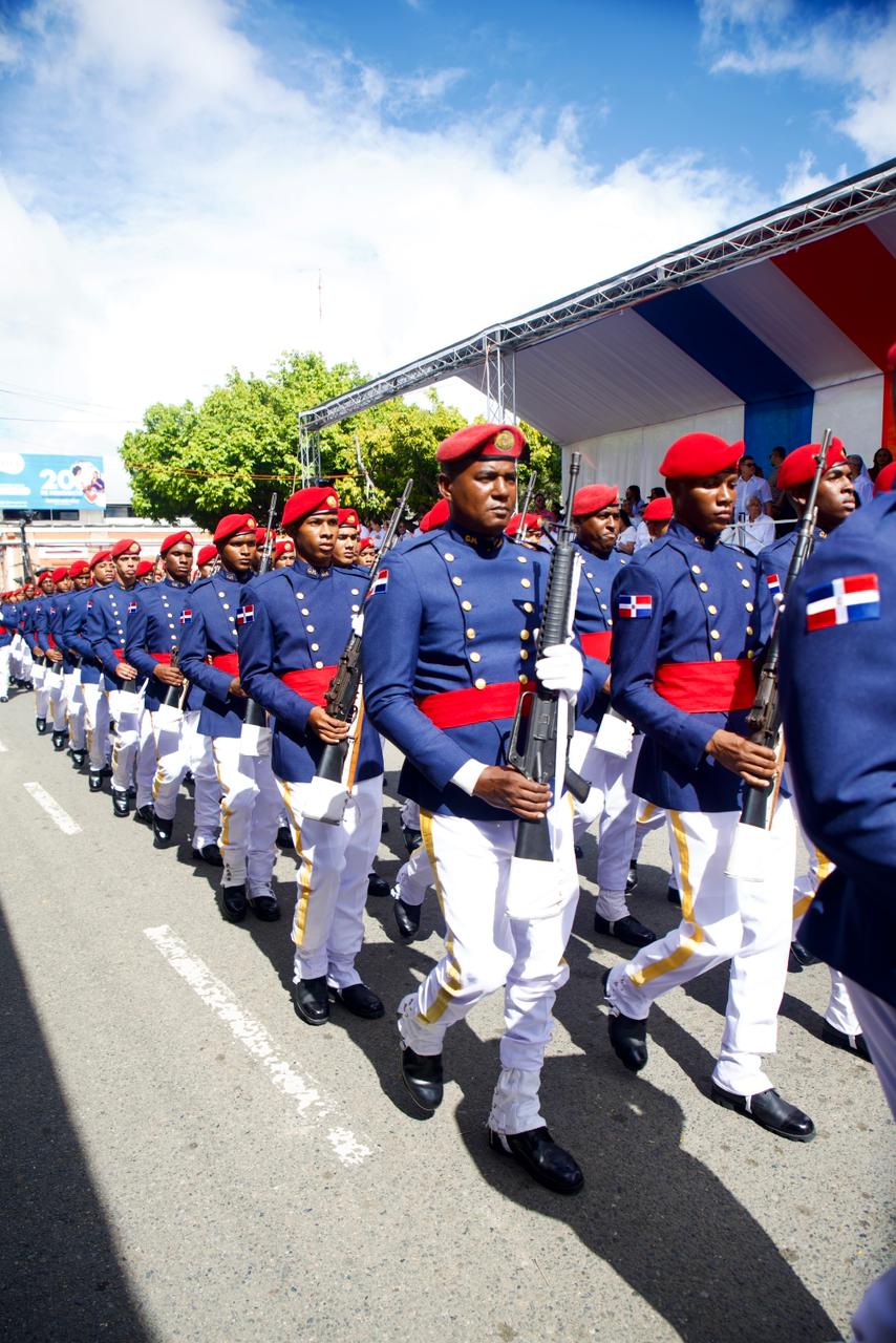 La conmemoración continuó con el desfile cívico, militar y policial caracterizado por el entusiasmo, el colorido y la integración de los munícipes de la provincia Duarte y su municipio cabecera, San Francisco de Macorís, donde los estudiantes mostraron con orgullo los símbolos y el colorido de la dominicanidad.