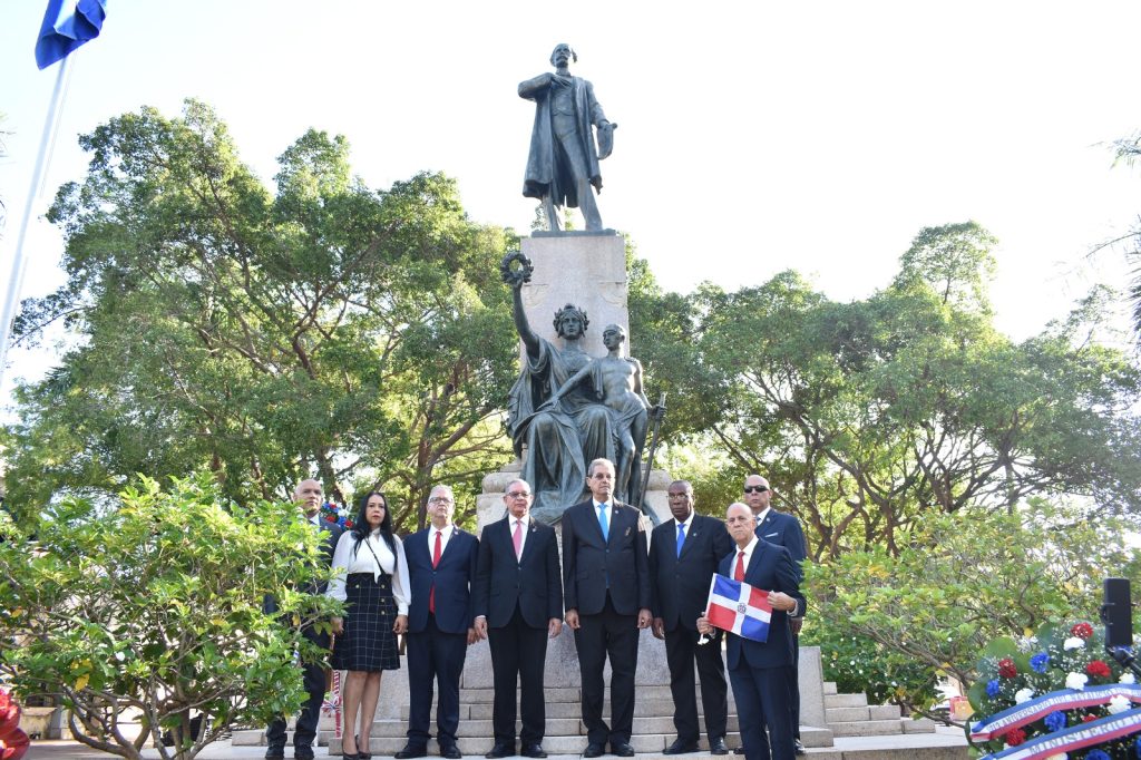 Posteriormente, fue realizado el depósito de una ofrenda floral en el parque Duarte, gesto simbólico que recordó el ideario independentista del fundador de la República y su vigencia en la vida nacional.