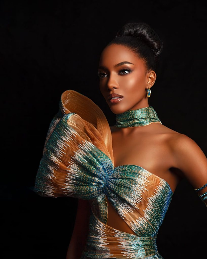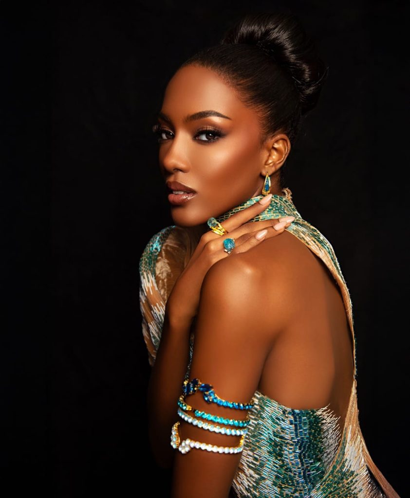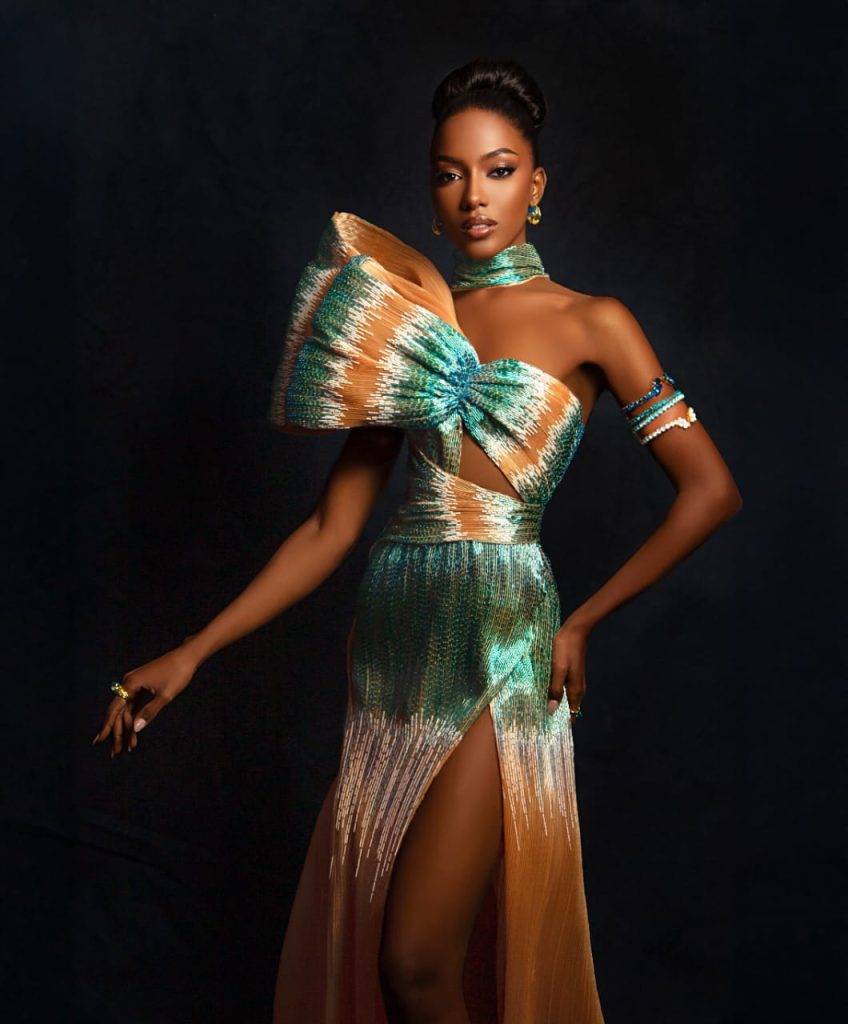 “La Reina de los Mares” es el título que lleva la creación del diseñador dominicano LUIS DOMÍNGUEZ para la hermosa candidata al Miss Universo 2025 por las Islas Turcos y Caicos, BERENIECE DICKENSON.